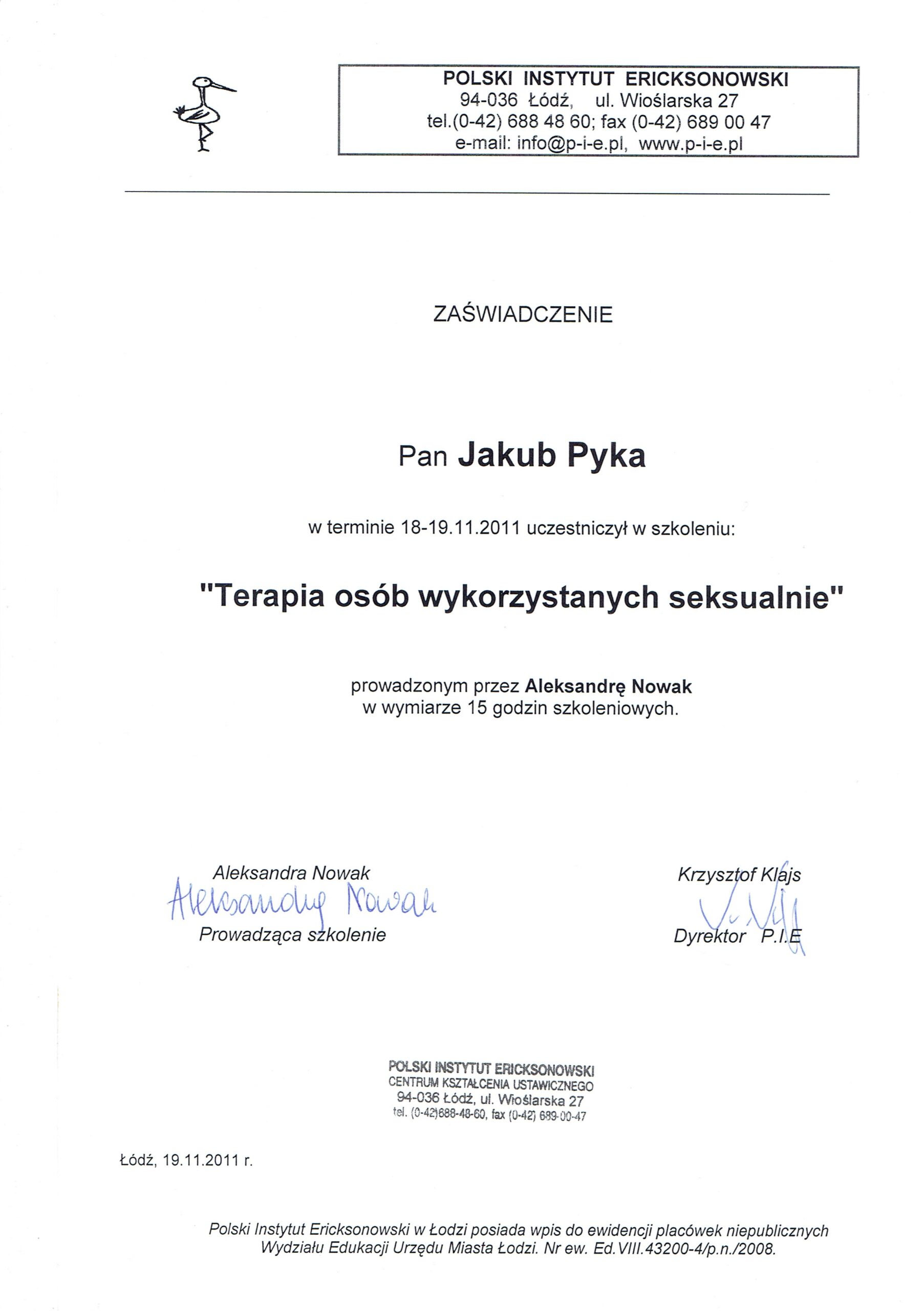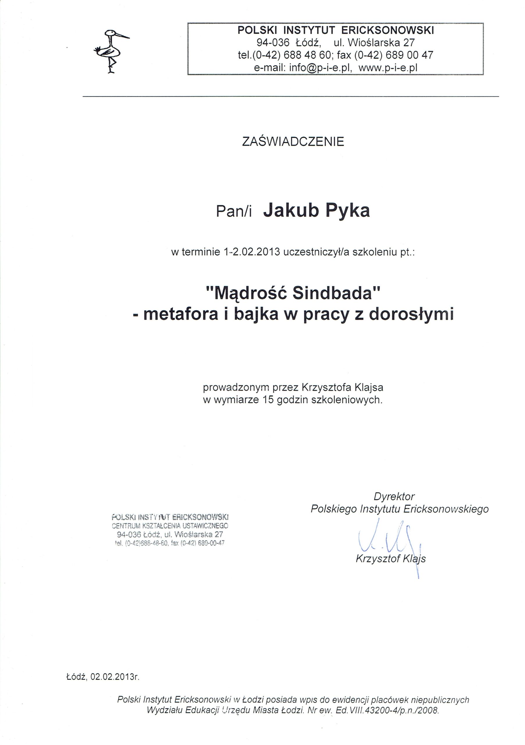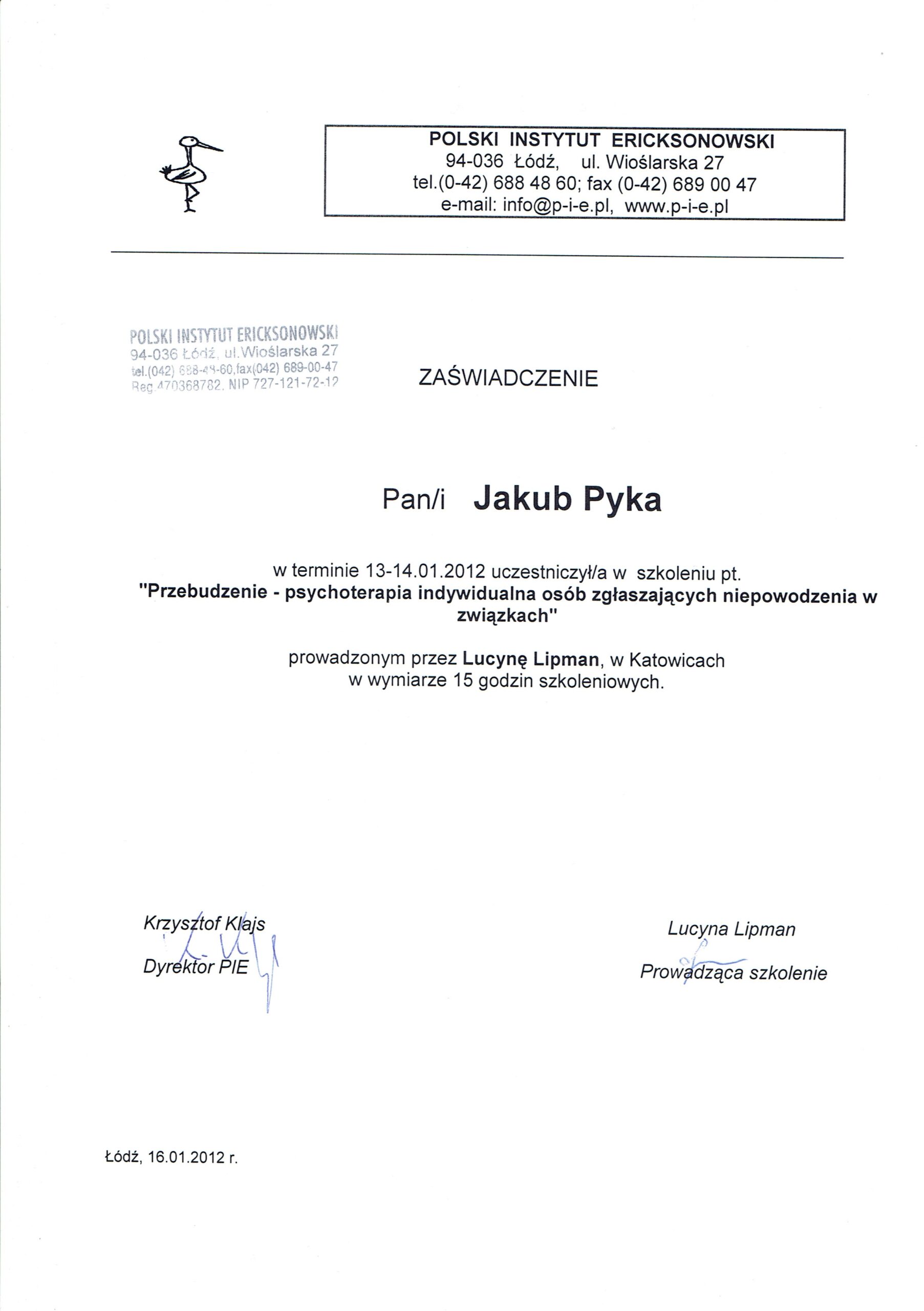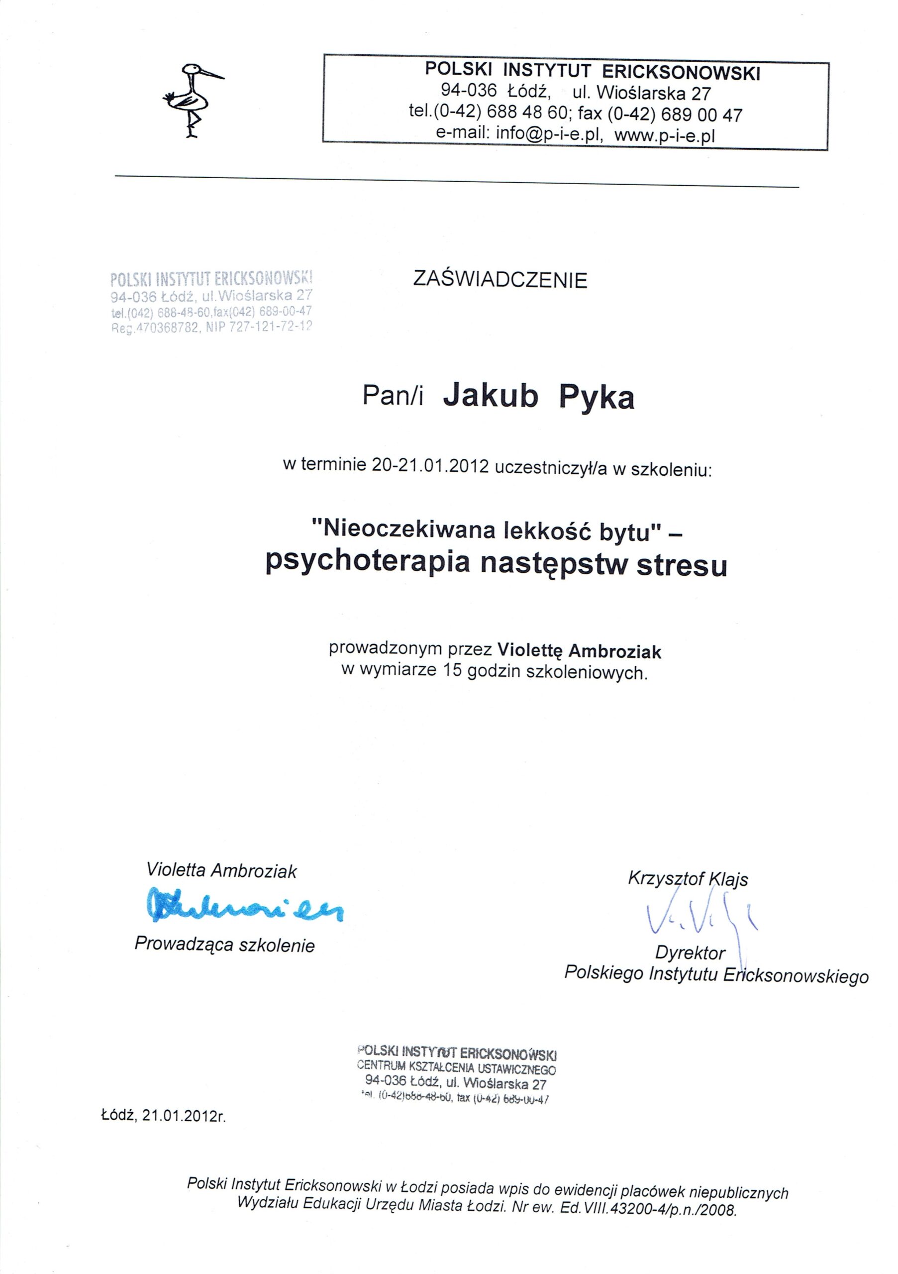 - Odbyłem szkolenie psychoterapeutyczne w podejściu ericksonowskim