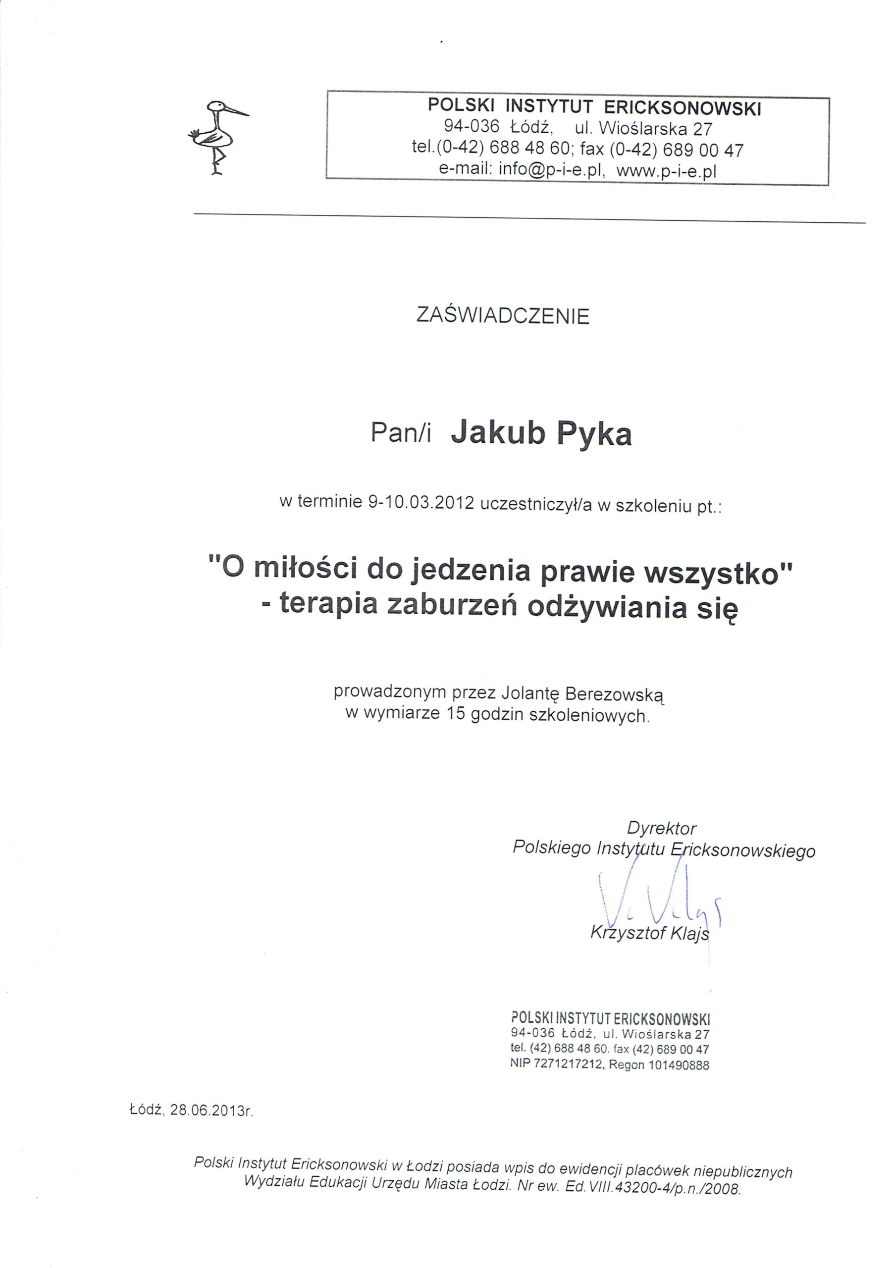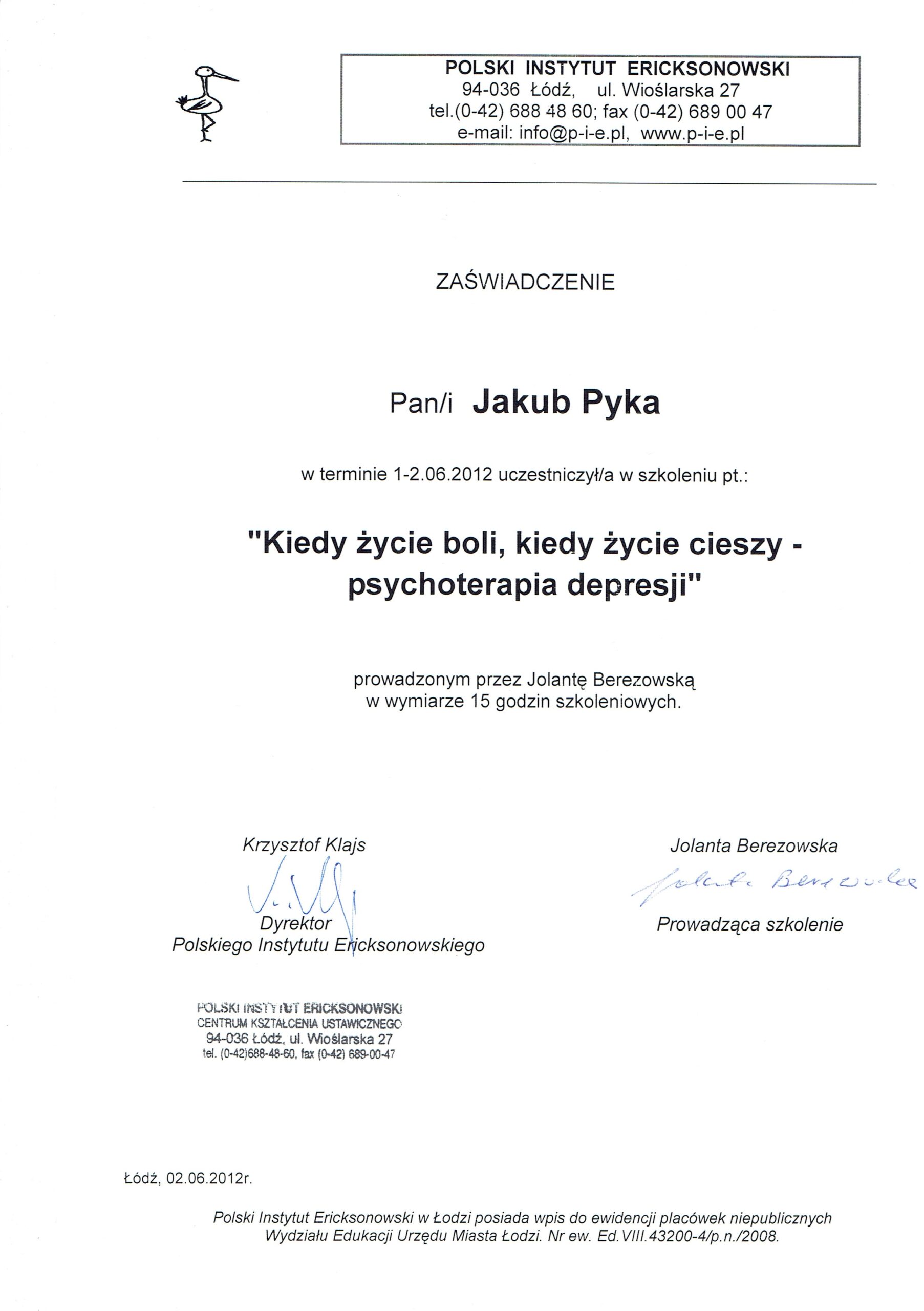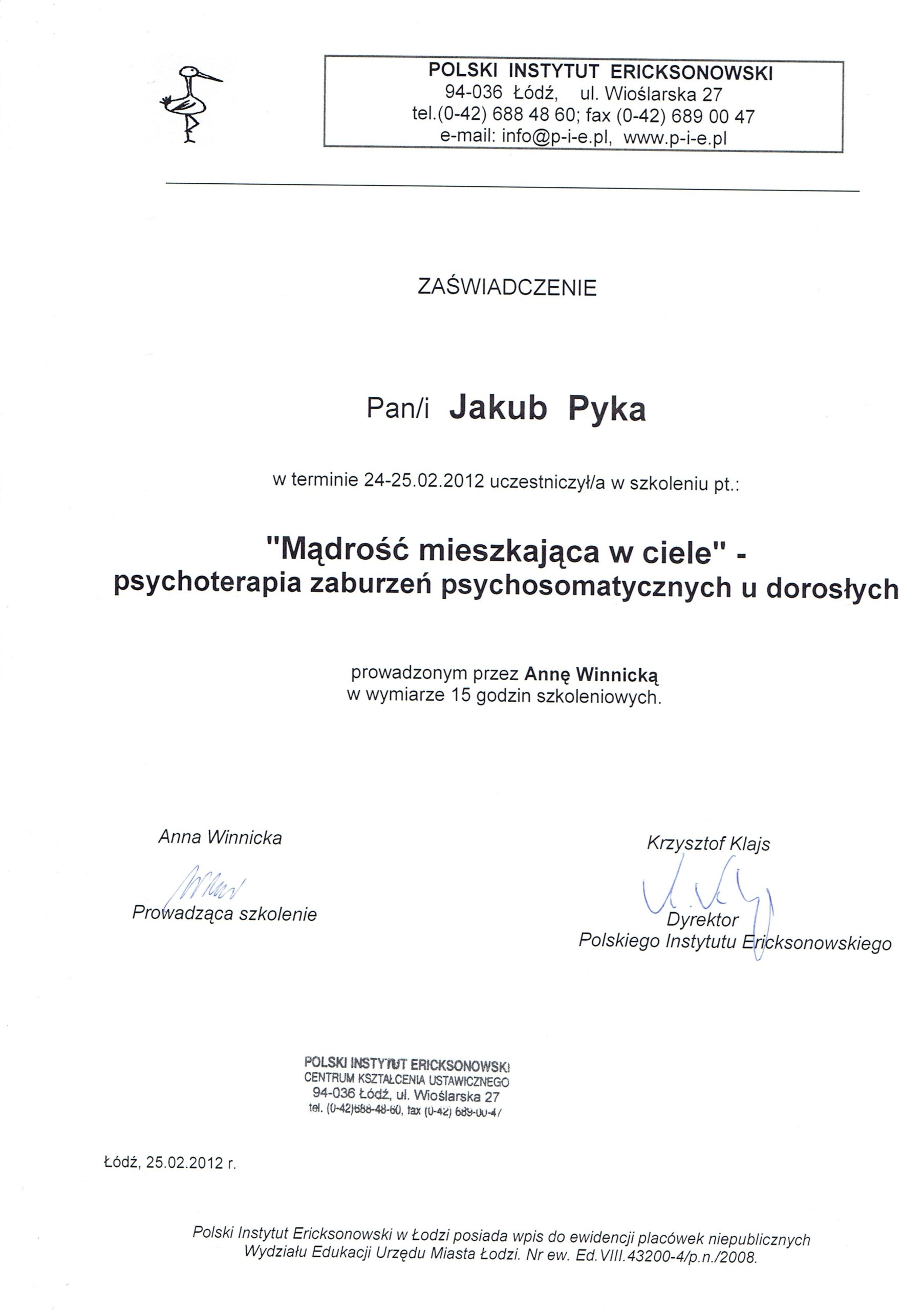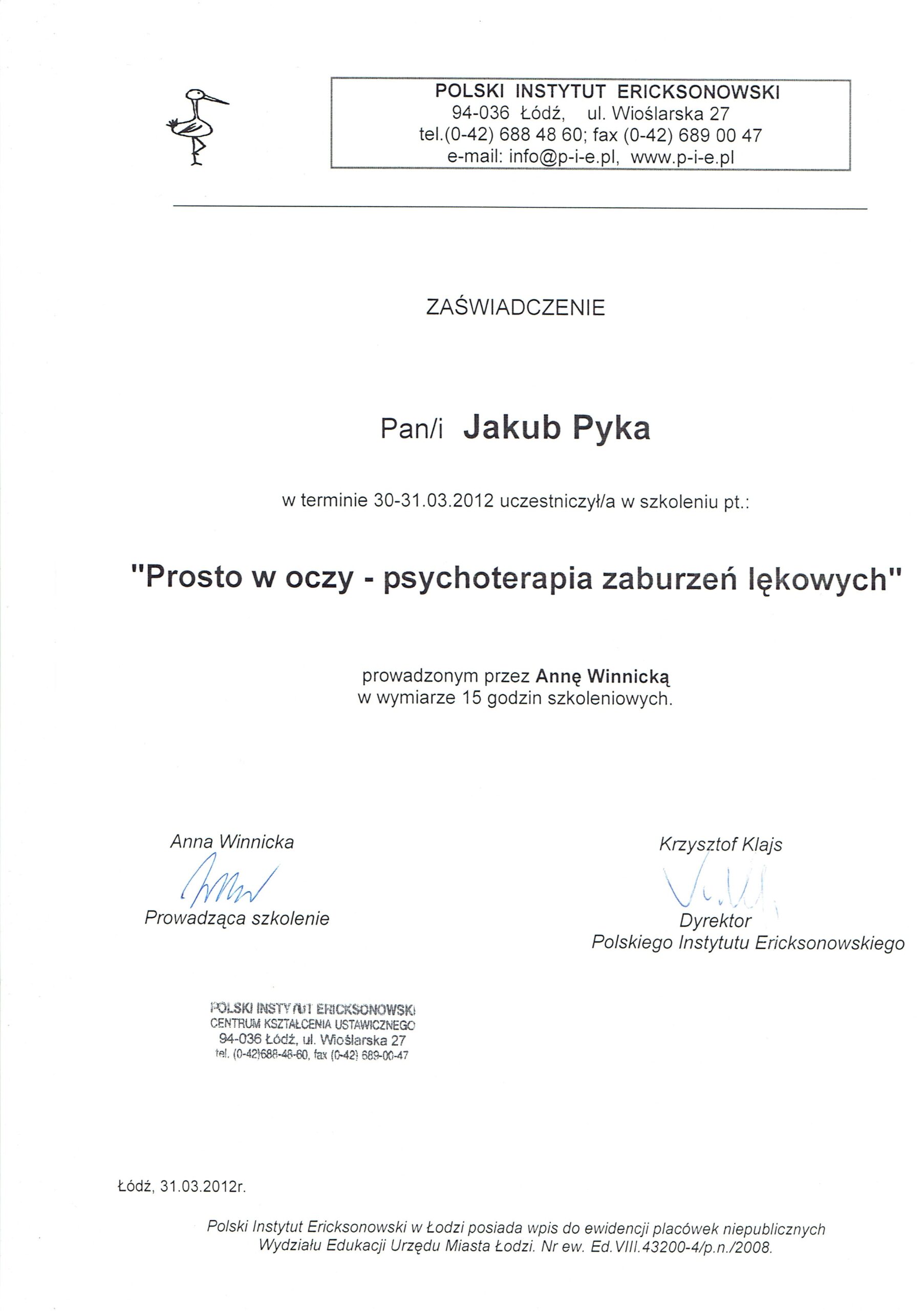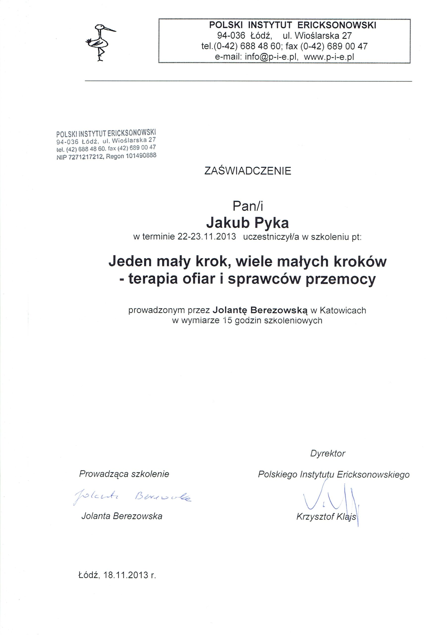 - Odbyłem szkolenie psychoterapeutyczne w podejściu ericksonowskim