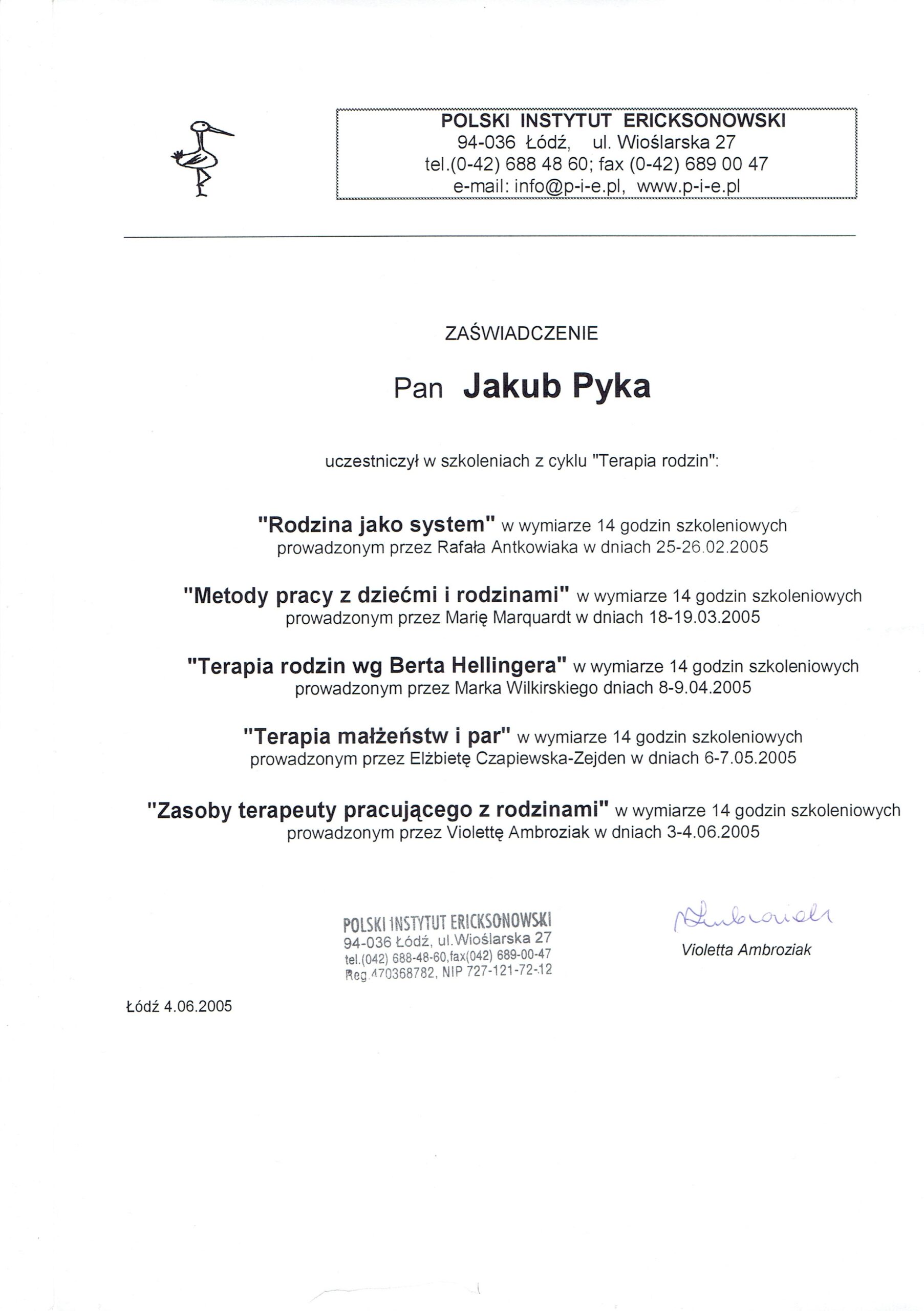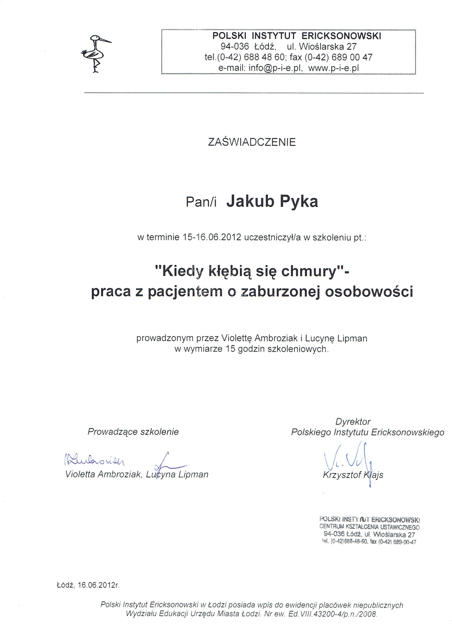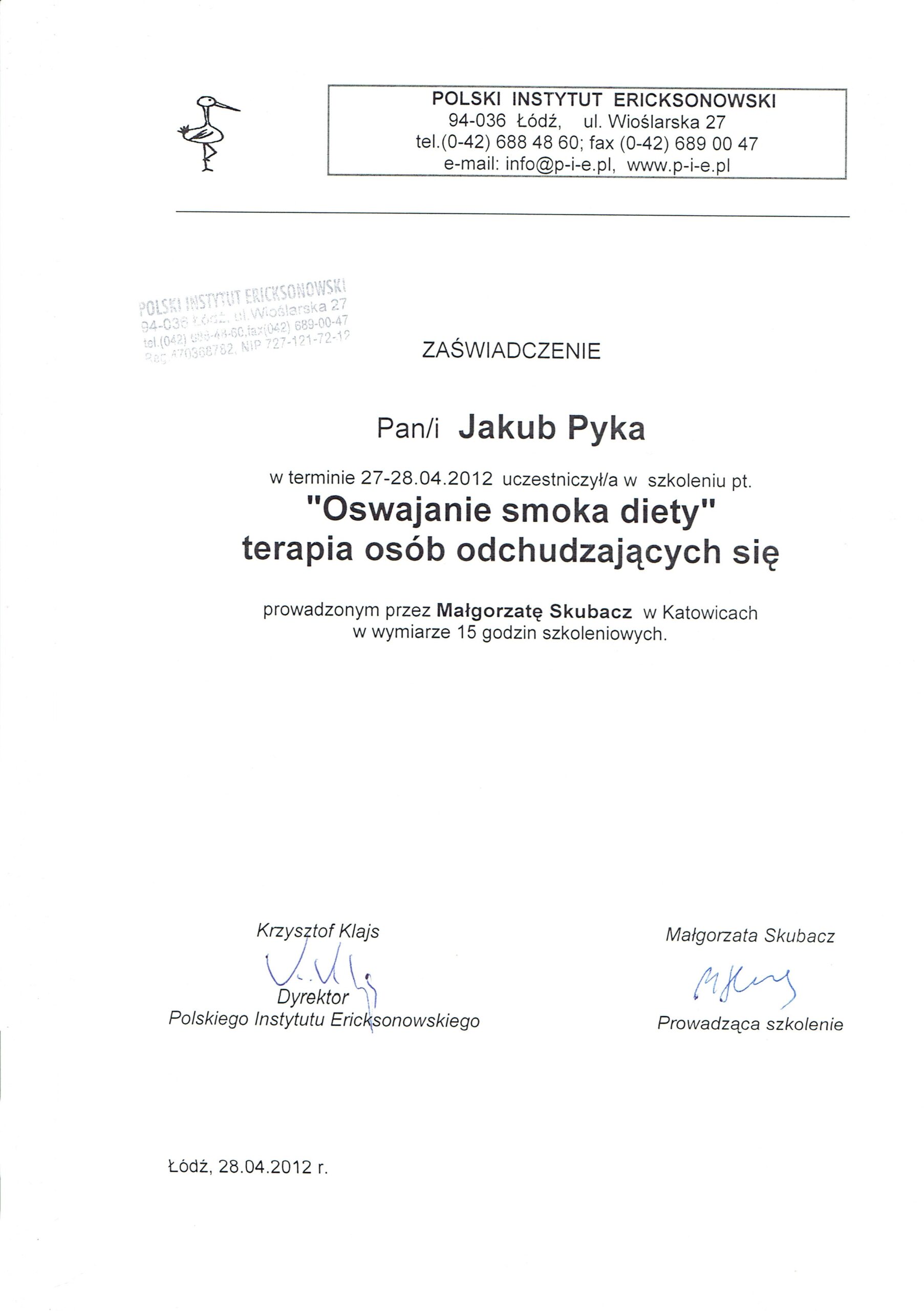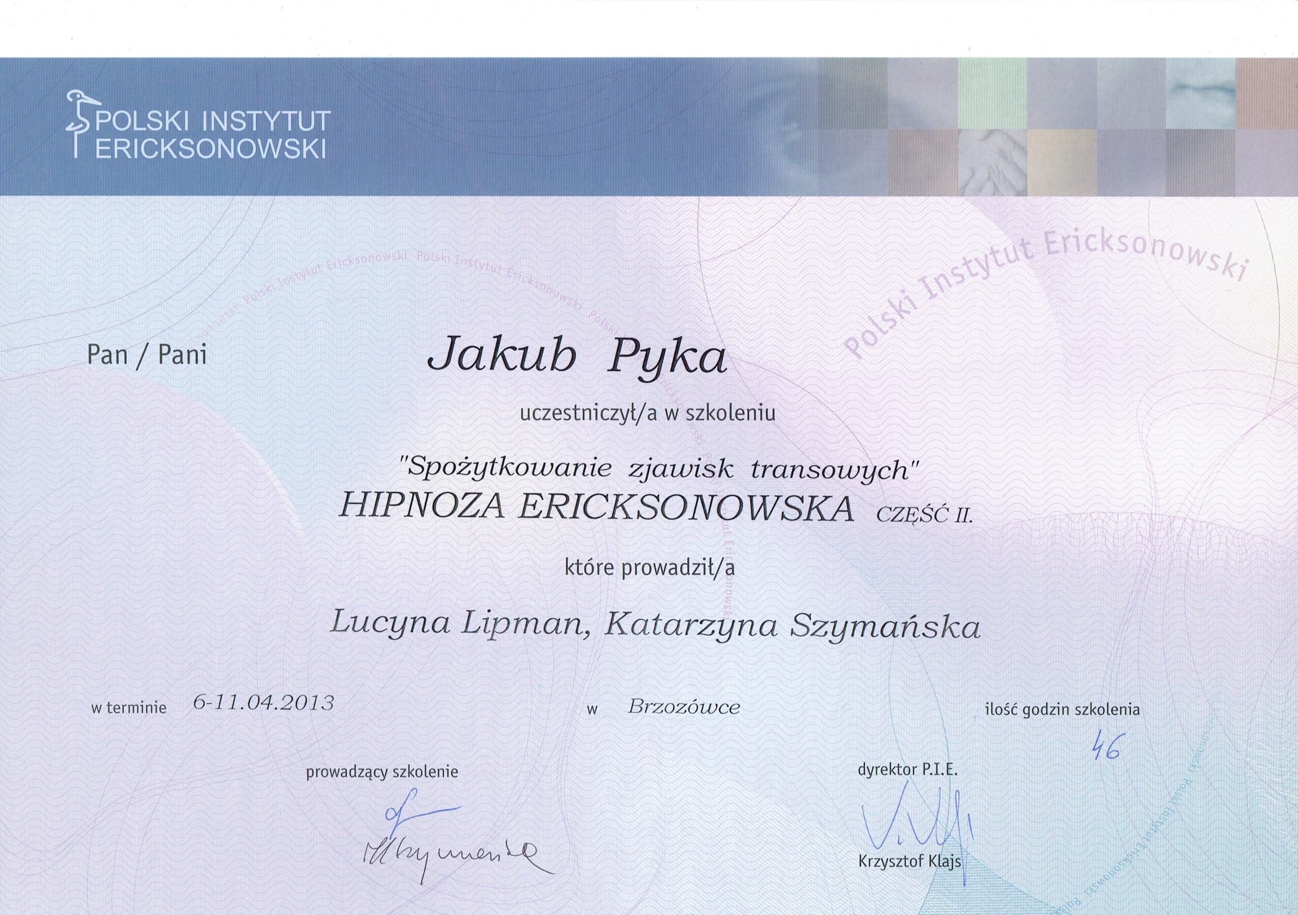 - Odbyłem szkolenie psychoterapeutyczne w podejściu ericksonowskim